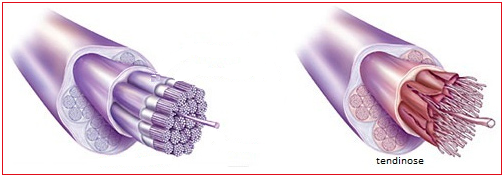 Nesta fase o tratamento é o: “fortalecimento do manguito rotador”. São estes os músculos responsáveis por estabilizar a articulação do ombro. Eles são diferentes dos músculos trabalhados na academia, onde o importante é o que “aparece”. Então, se o objetivo é melhorar o manguito rotador, procure o profissional adequado para este trabalho, o fisioterapeuta. Com muita vontade e disciplina, pode-se fazer este fortalecimento em casa, com exercícios específicos para o manguito rotador. O resultado do tratamento vem a longo prazo, 3, 6 meses ou até 1 ano fazendo os exercícios.Digamos que a dor não ceda, quais os próximos passos? Não acostume com ela. Continue o tratamento, o médico irá orientá-lo, a utilizar vários métodos adjuvantes, como infiltrações, acupuntura, massagens, medicamentos, mas nunca deixe de continuar o tratamento fisioterápico, pois o fortalecimento é a solução.Caso a dor continue e o tratamento não cumpra seu efeito, a doença do manguito rotador começa a evoluir e após a 3ª década de vida os tendões começarão a se degenerar. Fruto da sobrecarga vivida por vários anos. Esta degeneração significa a perda do padrão fibrilar do tendão, semelhante a uma corda, feita de vários fios, passando a se constituir de uma massa cicatricial de colágeno, com fibras tendíneas desorganizadas, conforme a figura. Nesta condição o tendão perde muito a sua resistência.